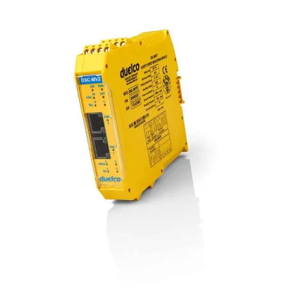 Duelco safety controllers (DSC) provide a modular, programmable safety system. DSC is capable of monitoring several safety sensors such as safety light curtains, laser scanners, photocells, mechanical switches, mats, emergency stop, two-hand operation. These can all be monitored flexibly and simply, using this device.