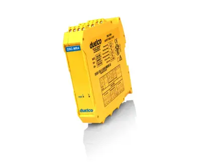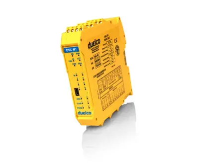Duelco safety controllers (DSC) provide a modular, programmable safety system. DSC is capable of monitoring several safety sensors such as safety light curtains, laser scanners, photocells, mechanical switches, mats, emergency stop, two-hand operation. These can all be monitored flexibly and simply, using this device.
